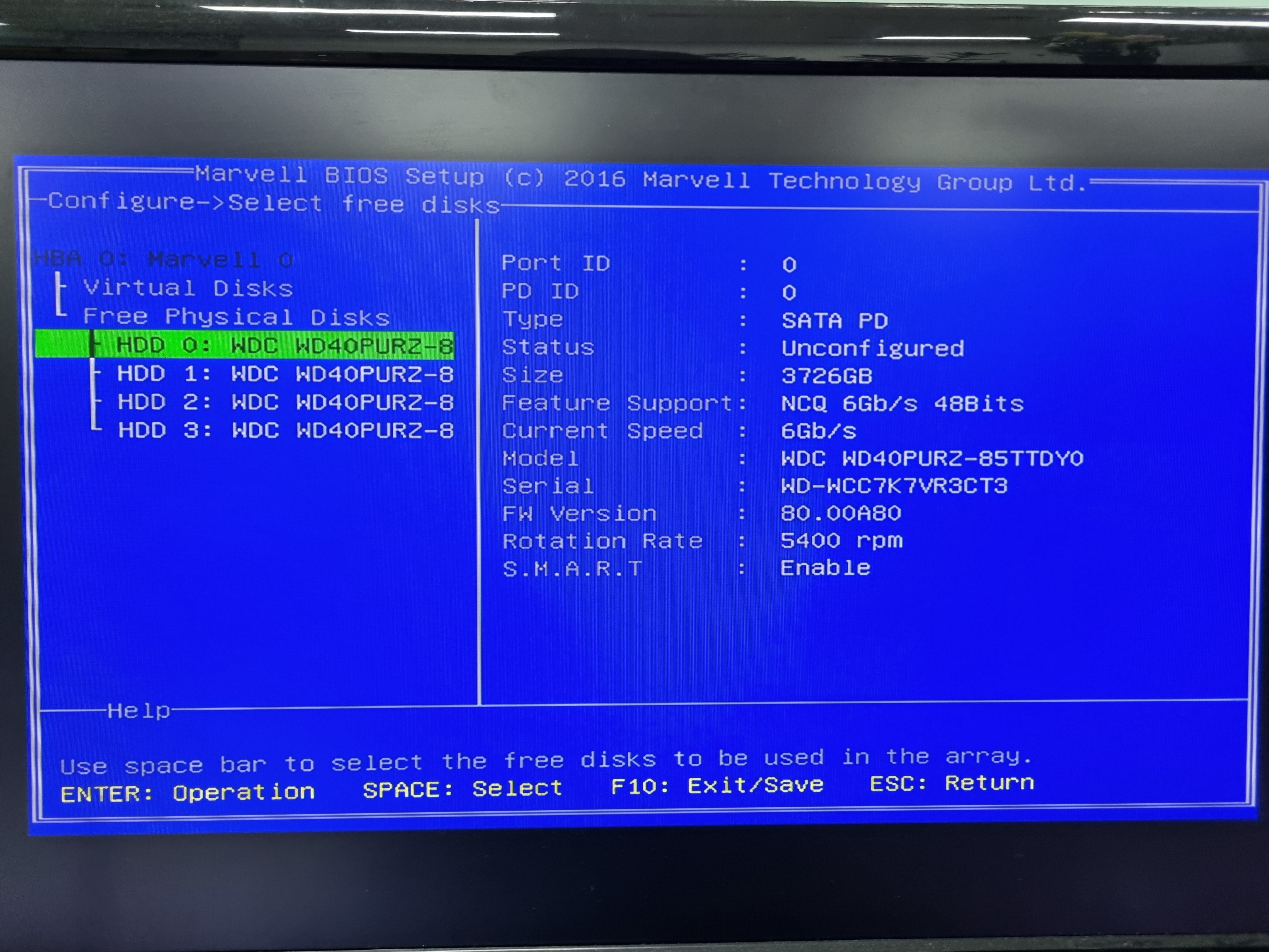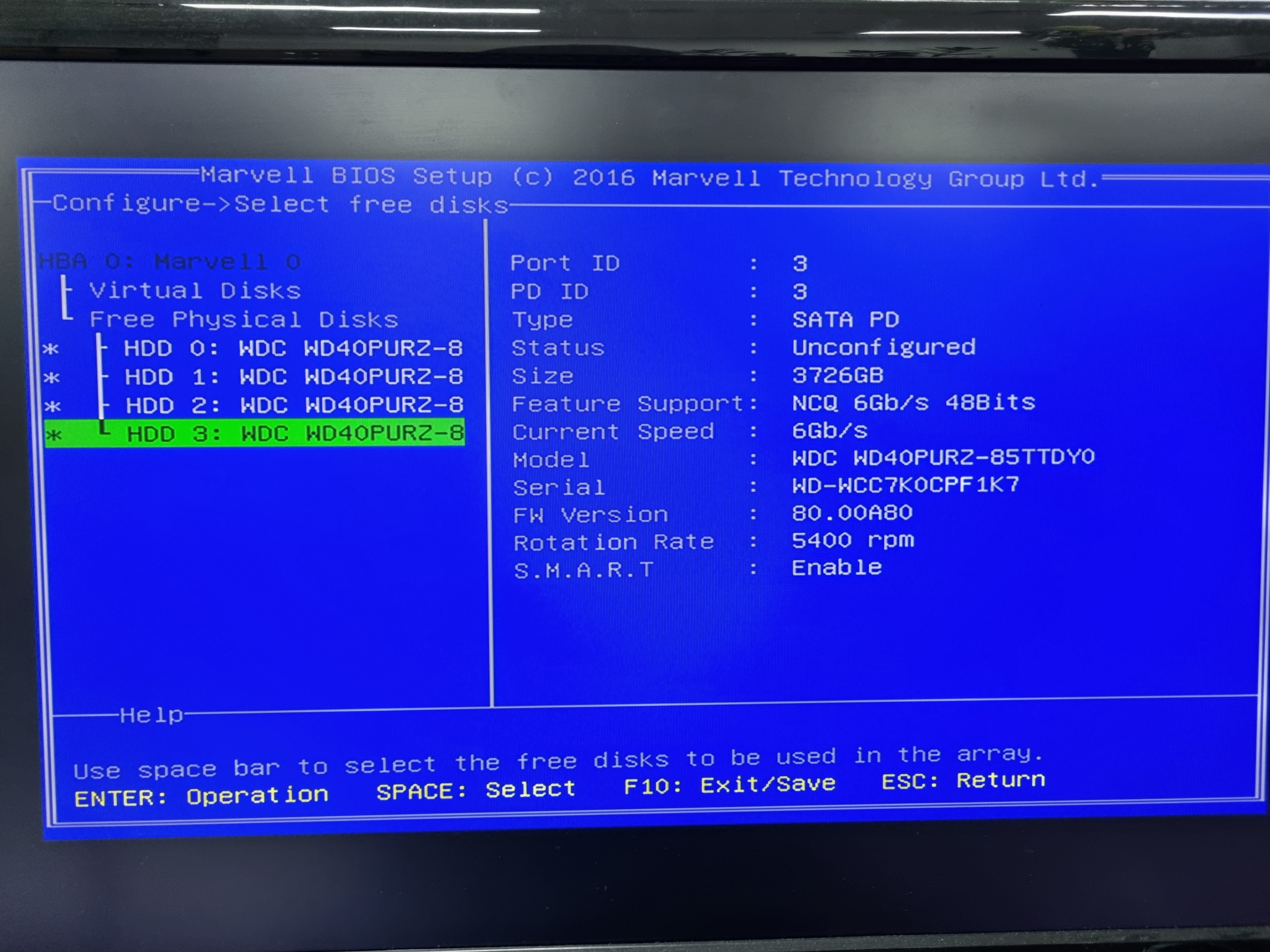 6. 레이드 구성할 하드를 SPACE로 선택 후 엔터