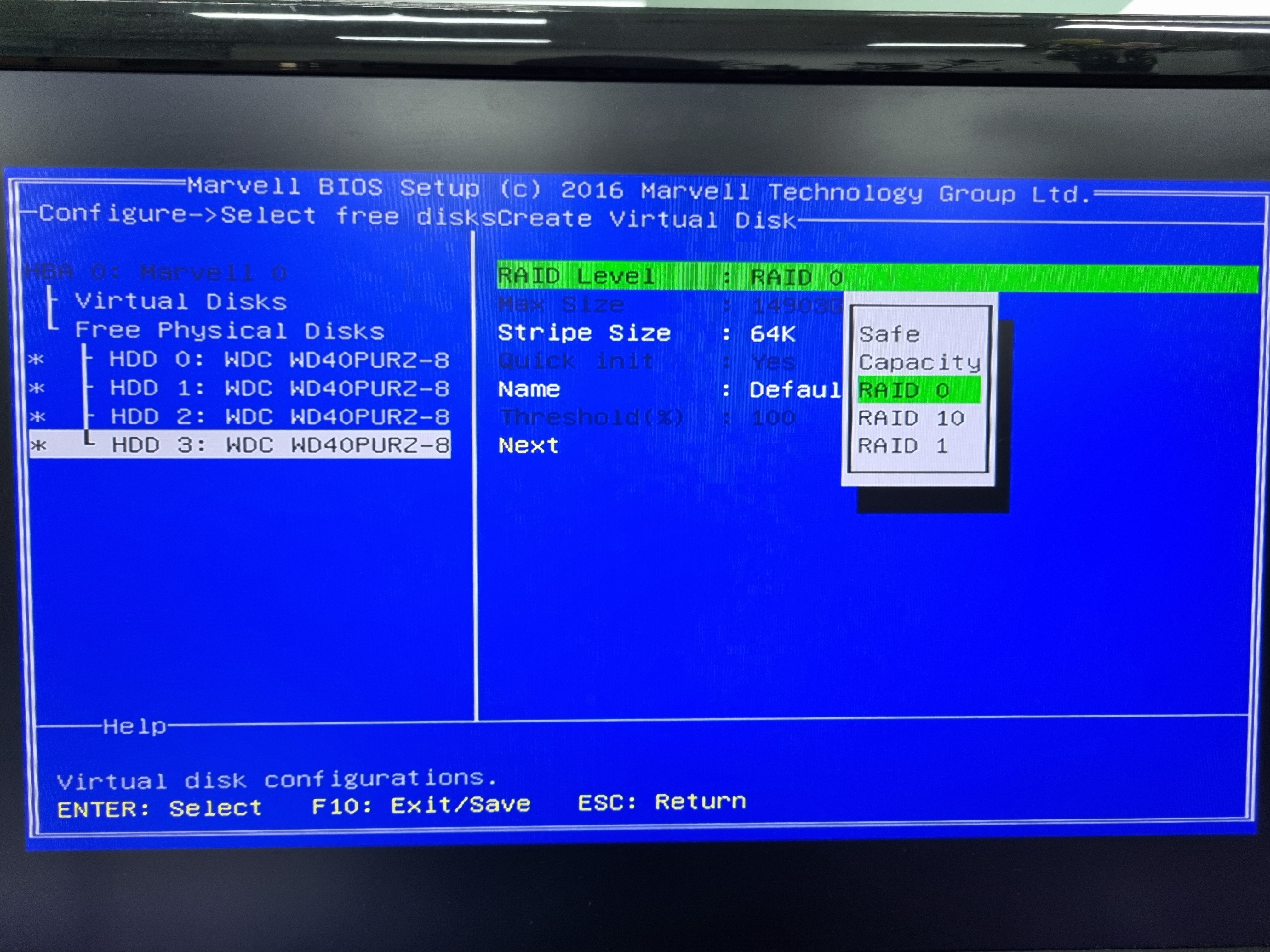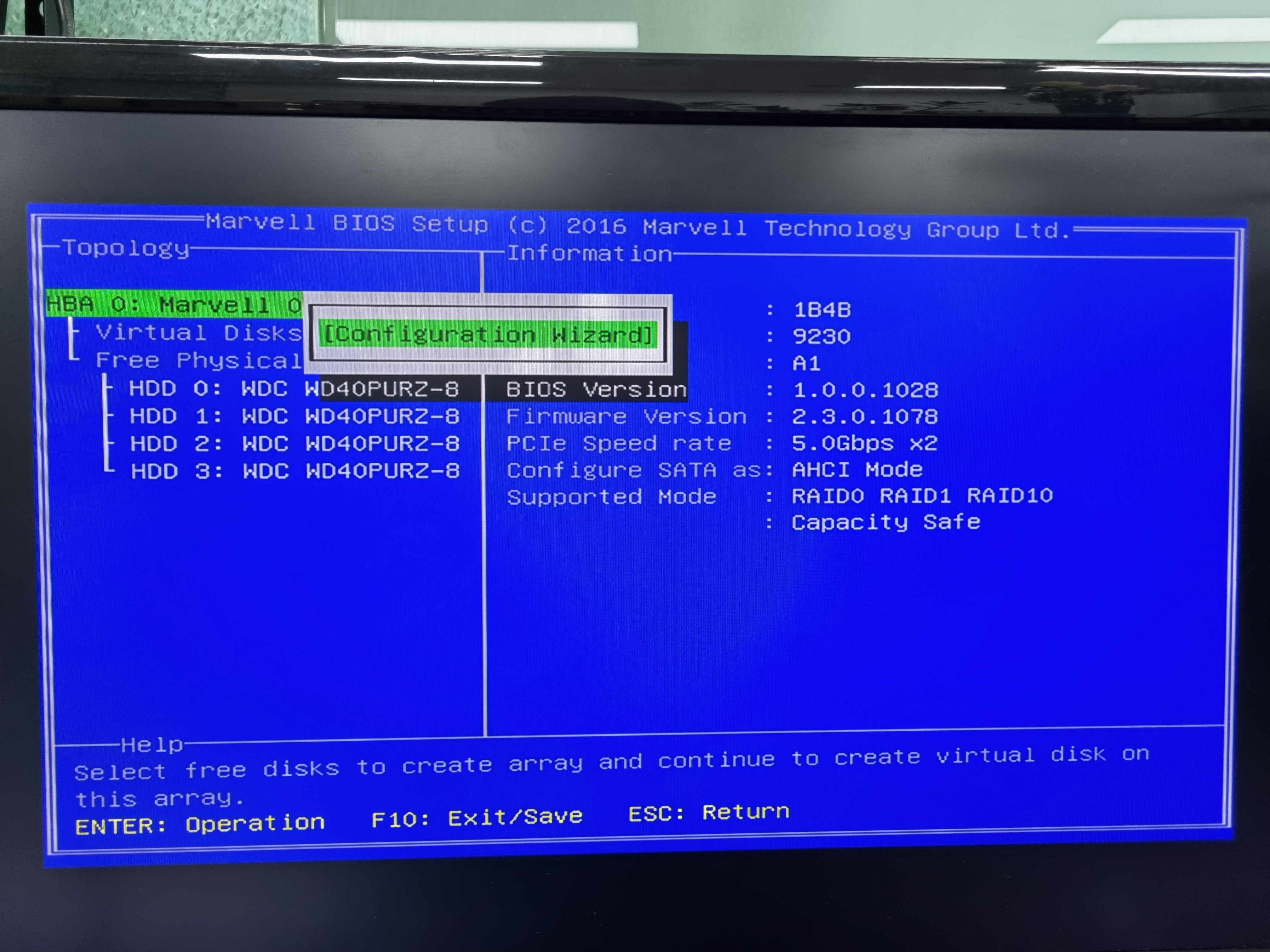 5. HBA 0: Marvell 0에서 엔터 -> Configuration Wizaerd에서 엔터